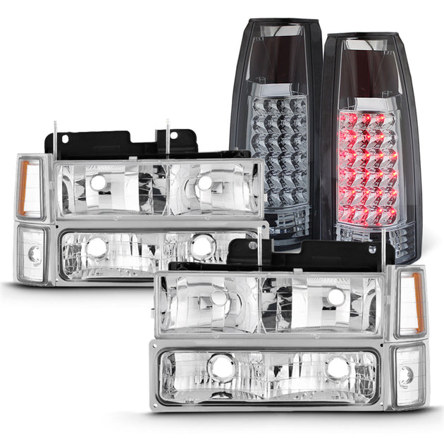AKKON - Fits 94-98 C/K 1500 2500 3500 Tahoe Suburban Pickup Chrome Headlights +Corner + Bumper Signal Lamp + LED Tail Light Pair