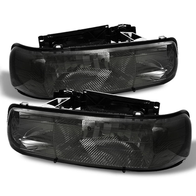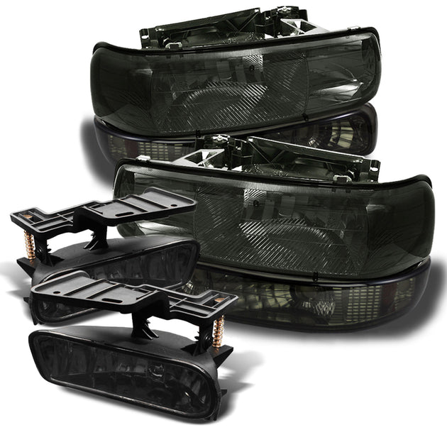 AKKON - Fits 99-02 Silverado 1500HD/2500HD 00-06 Suburban 1500/2500 Tahoe Smoked Headlights+Bumper Signal+Halo Projector FogLamp