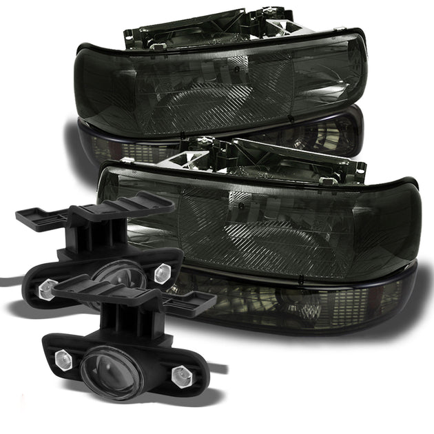 AKKON - Fits 99-02 Silverado 1500HD/2500HD 00-06 Suburban 1500/2500 Tahoe Smoked Headlight+Bumper Signal+Halo Projector Fog Lamp