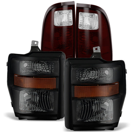 AKKON - Fits 2008-2010 Ford F250 F350 F450 F550 Super Duty Black Smoked Headlights+ Dark Red Tail Lights Lamp