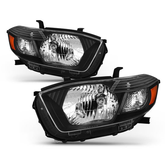 AKKON - Fits 2008-2010 Toyota Highlander OE Style Headlights Black Headlamp Left+Right Pair Set Halogen Type Bulb