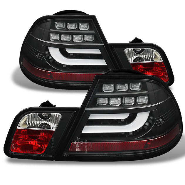 AKKON - For 00-03 BMW E46 3-Series 2 Doors Coupe Black Light Tube Design LED Tail Lights Brake Lamps Pair