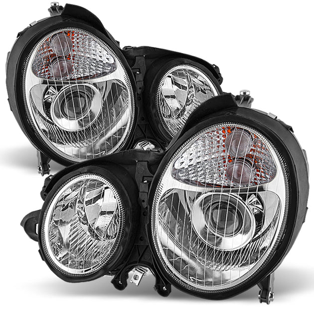 AKKON - For 00-02 Mercedes Benz W210 E-Class E320 E430 E55 Chrome Clear Projector Headlights Lamps Left+Right Pair