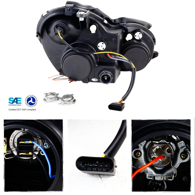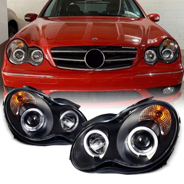 AKKON - For 01-07 Benz W203 C-Class 4-Doors Sedan Black Bezel LED [Dual Halo] Projector Halogen Type Projector Headlights
