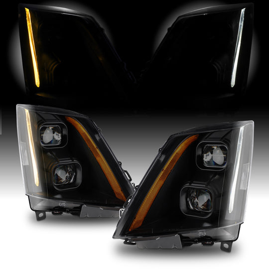 AKKON - Fits 2008-2014 Cadillac CTS Dual Projector Black Smoke Housing Headlights [Switchback LED]