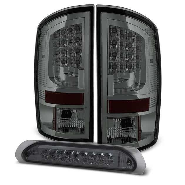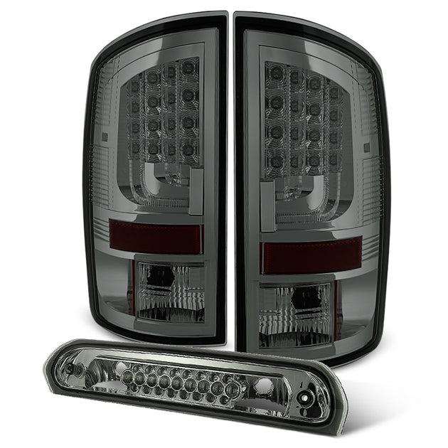AKKON - For 02 03 04 05 06 Dodge Ram Smoked Lens LED Tail Light + LED 3rd High Mount Cargo Brake Lamp Combo