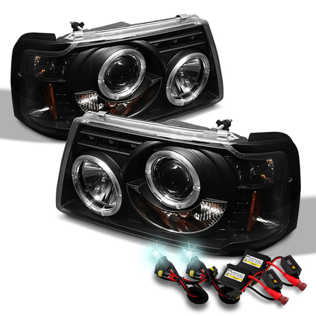 AKKON - For 01-12 Ford Ranger Pickup 2 in 1 Black Bezel Dual Halo Ring Projector Headlights w/ Corner Signal Lamps + 6000K HID
