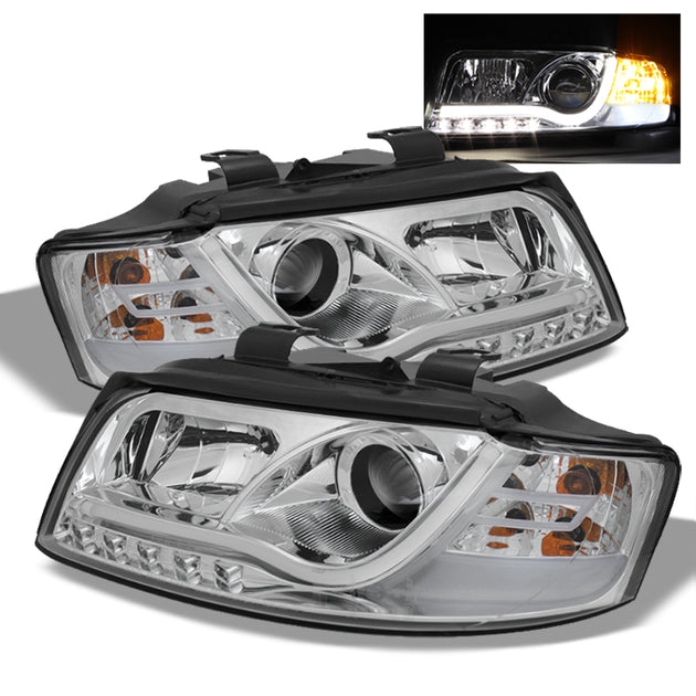 AKKON - For 02 03 04 05 Audi A4 S4 B6 Sport Sedan Chrome Clear DRL Daytime LED Light Tube Projector Headlights Lamps