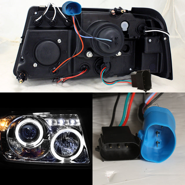 AKKON - For 01-12 Ford Ranger Pickup 2 in 1 Chorme Clear Dual Halo Ring Projector Headlights w/ Corner Signal Lamps