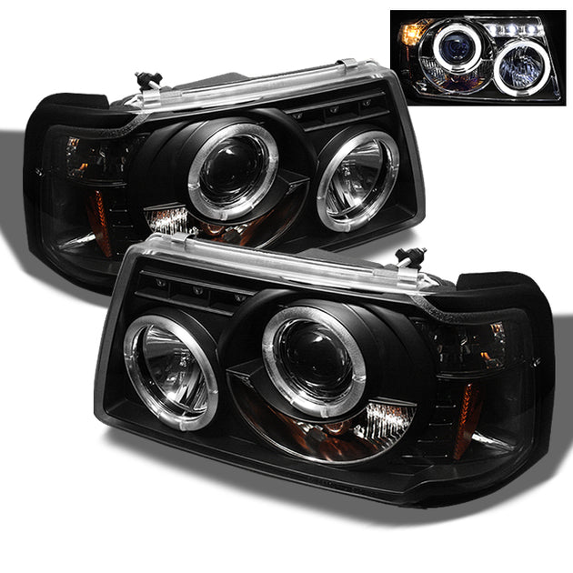 AKKON - For 01-12 Ford Ranger Pickup 2 in 1 Black Smoke Dual Halo Ring Projector Headlights w/ Corner Signal Lamps