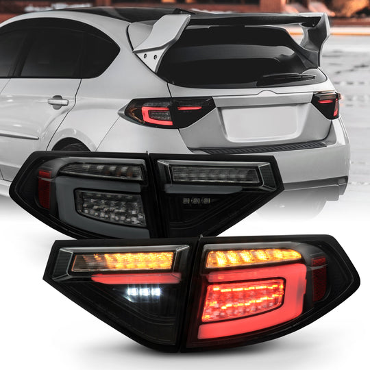 AKKON - Fits 2008-2014 Subaru Impreza WRX 2.5L Hatchback LED [C-Tube] Black Smoked Tail Brake Lights w/ Sequential Signal Pair