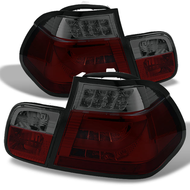 AKKON - For 02-05 BMW E46 3-Series 4 Doors Sedan Red Smoke Light Tube Design LED Tail Lights Brake Lamps Pair
