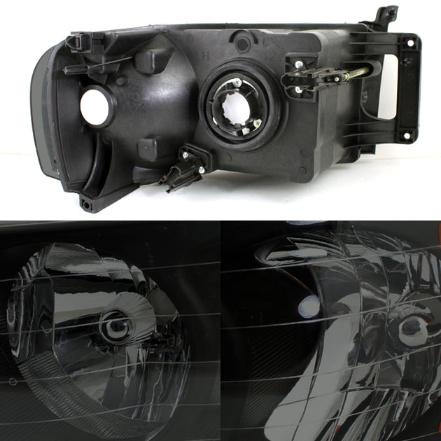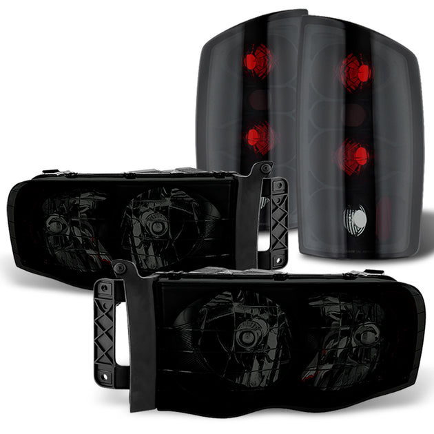 AKKON - For 02-05 Dodge Ram Pickup Truck Black Smoked Headlights Lamps Replacement + Black Smoke Rear Tail Lights