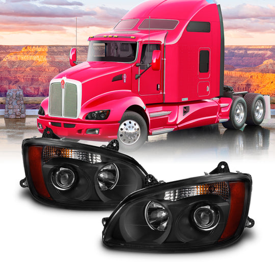AKKON - Fits 2008-2017 Kenworth T660 T170 T270 T370 T700 OE Style Projector Headlights Black Housing - Pair