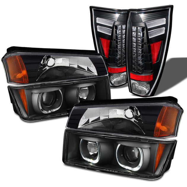AKKON - For 02-06 Avalanche Cladding Model LED Projector Headlight & Bumper Lens + LED Taillights - Black