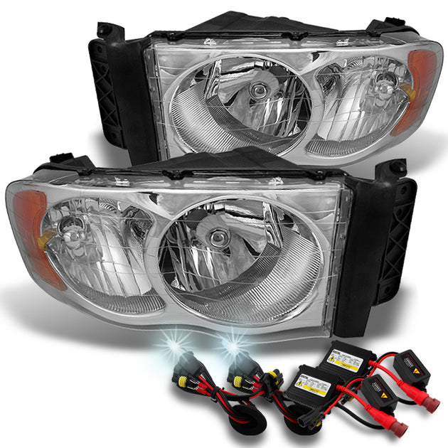AKKON - For 02-05 Dodge Ram Pickup Truck Replacement Headlights + 6000K White Slim Ballast HID Xenon Conversion Kit