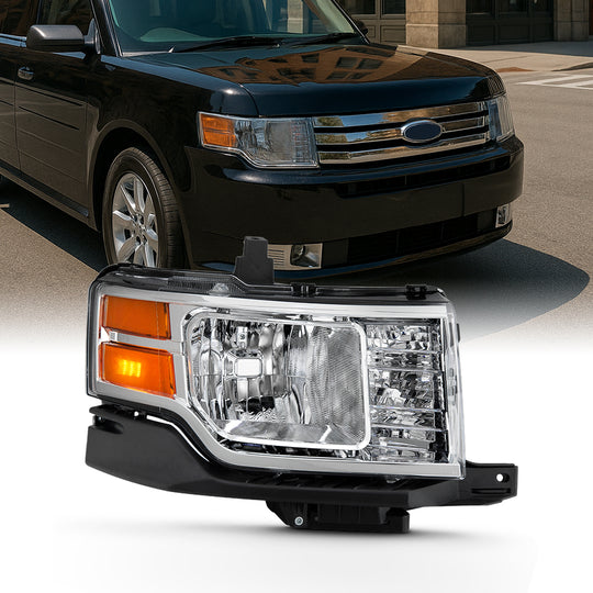 AKKON - Fits 2009 2010 2011 2012 Ford Flex SE SEL [Halogen Type] Chrome Headlight w/ Amber Side Signal Lamp Driver Left Side