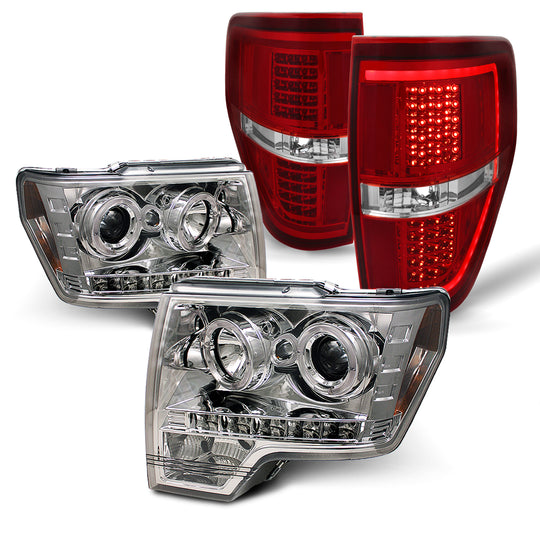 Regular price $334.99This is a 100% brand new pair of Headlight in Polished Platinum Chrome Housing With Crystal Clear Lens & Tail light in Polished Platinum Chrome Housing With Red Cosmos Lens Compatible With: 2009-2014 Ford F-150 Attention:... -