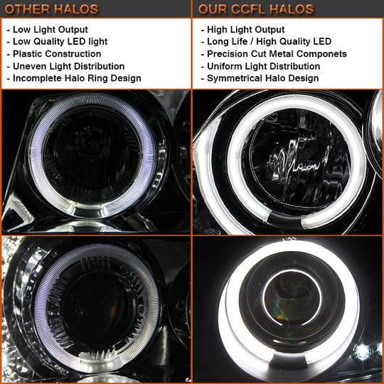 AKKON - Fits 2009-2014 F-150 F150 Dual Halo LED Projector Chrome Headlights + LED [C-Light Bar] Red Clear Tail Lamp Combo