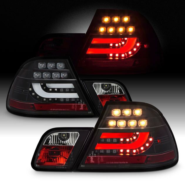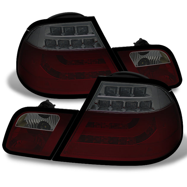 AKKON - For 04-06 BMW E46 3-Series 2 Doors Coupe Red Smoke Light Tube Design LED Tail Lights Brake Lamps Pair