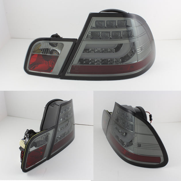 AKKON - For 04-06 BMW E46 3-Series 2 Doors Coupe Smoke Smoked Light Tube Design LED Tail Lights Brake Lamps Pair