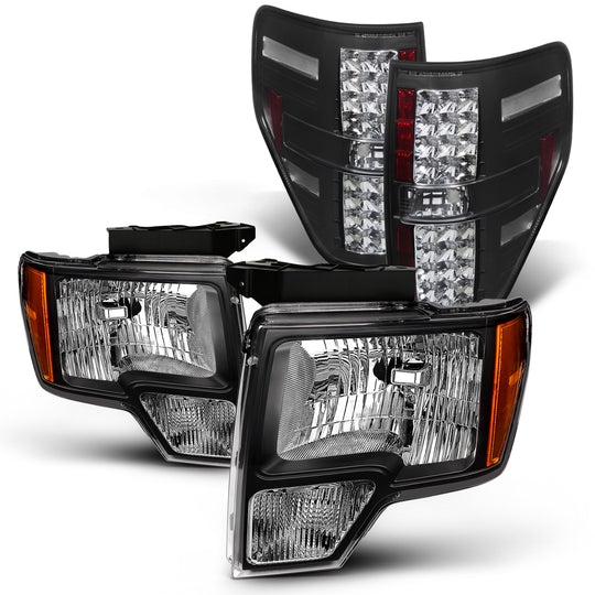 AKKON - Fits 2009-2014 Ford F150 Pickup Truck Black Headlights + LED Tail Brake Lamp Pair Left Driver+Right Passenger