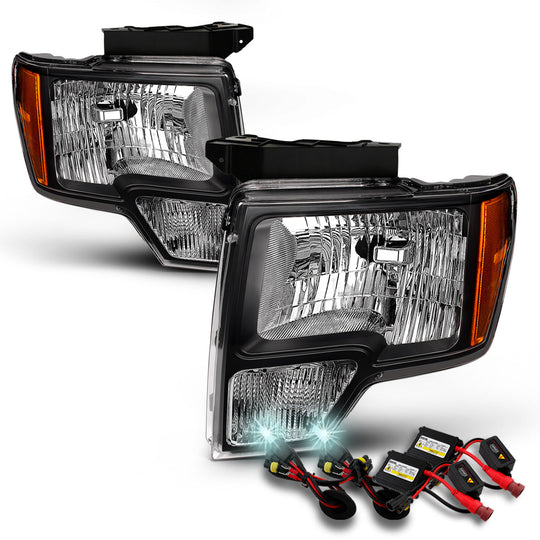 Regular price $143.99This is a 100% brand new pair of Replacement Headlights in Black Housing Clear Len + Slim Ballast 8000K HID Kit Compatible With: 2009-2012 Ford F-150 2013-2014 Ford F-150 Except Limited, Platinum, or Tremor Models ATTN:... -