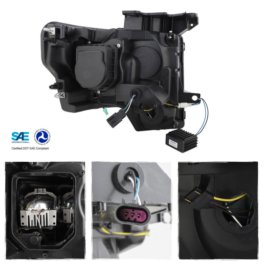 AKKON - Fits 2009-2014 Ford F150 Pickup Truck [Full LED] Projector Beam Black Headlights + LED Chrome Smoked Tail Brake Lights