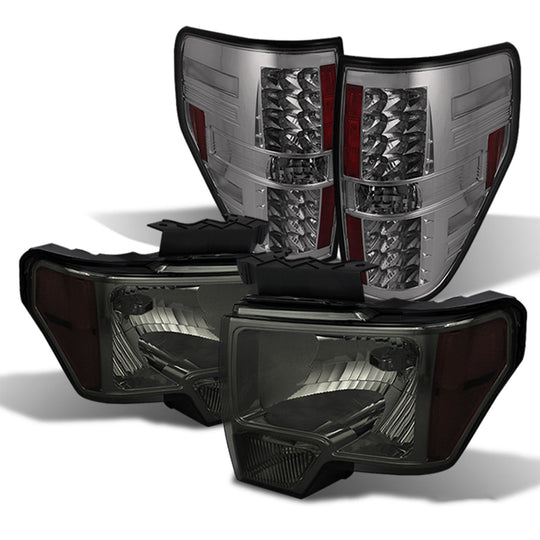 Regular price $241.99This is a 100% brand new pair of Replacement Headlights + LED Tail Lights in Smoked Lens Compatible With: 2009-2014 Ford F-150 ATTN: Not Compatible on 2013-2014 F-150 Limited, Platinum, or Tremor Models ATTN: Not Compatible... -