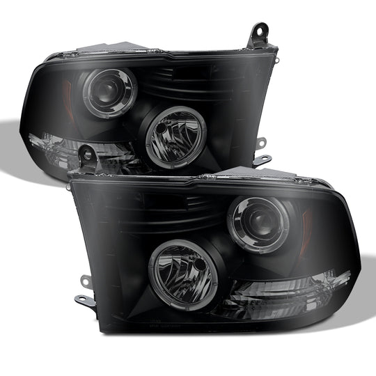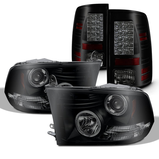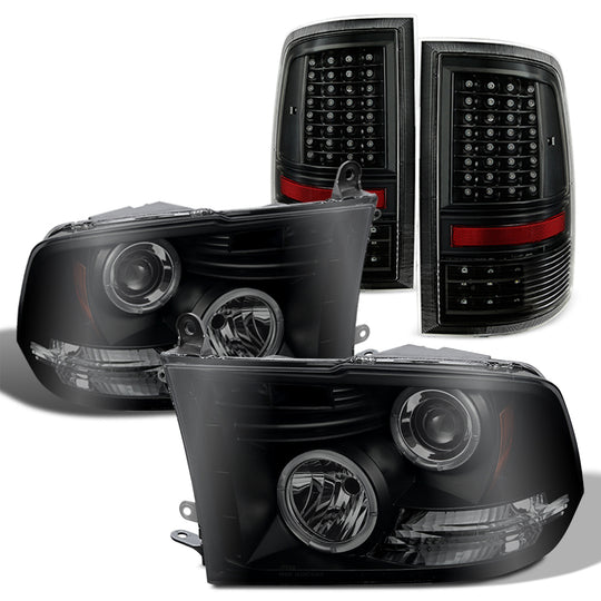 AKKON - Fits 2009-2018 Dodge Ram LED Dual Halo Projector Smoked Headlights & LED Tail Lamps [Black Housing]