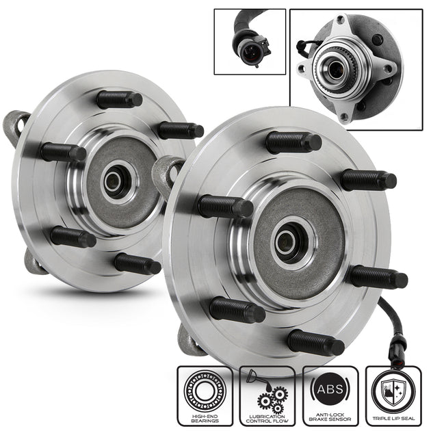 AKKON - For 05-08 Ford F-150 | 06-08 Lincoln Mark LT 515079 Pair of 6-Bolt Front Wheel Hub and Bearing W/ ABS
