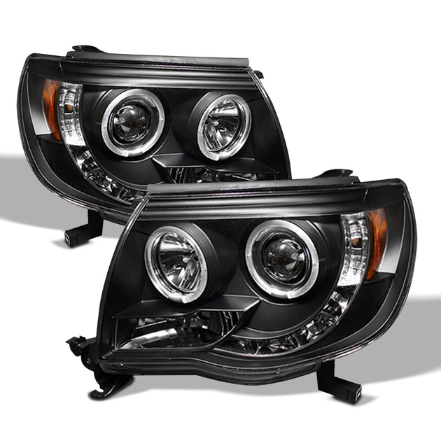 AKKON - For 05-11 Toyota Tacoma Pickup Black Bezel Dual Halo Ring Design Projector LED Replacement Headlights
