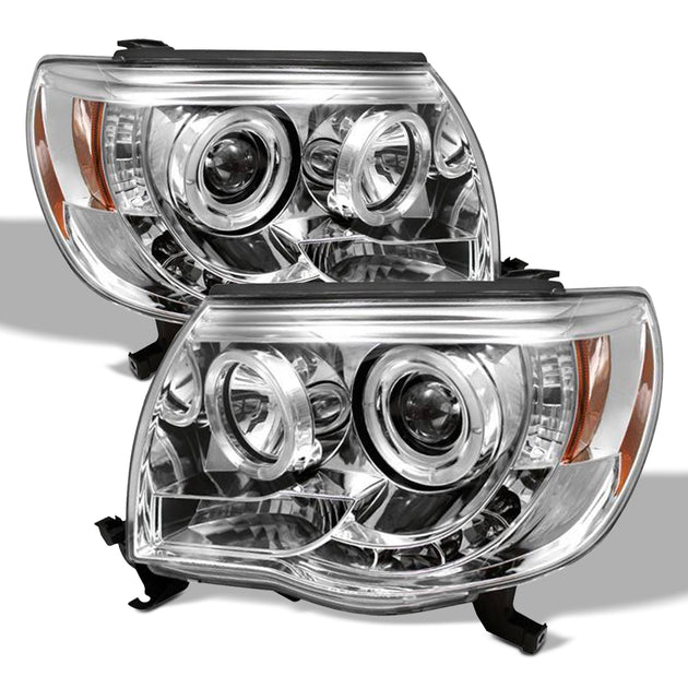 AKKON - For 05-11 Toyota Tacoma Pickup Chrome Bezel Dual Halo Ring Design Projector LED Replacement Headlights Lamps + Fog Light