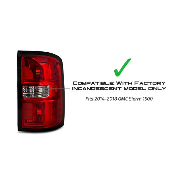 AKKON - Fit 2014 2015 2016 2017 2018 GMC Sierra 1500/ 15-19 Sierra 2500HD 3500HD Halogen Clear Lens w/ Chrome Housing Red Cap Tail Lights Rear Lamp Assembly Pair