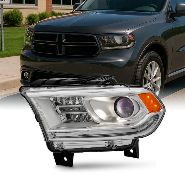 AKKON - Fit 2014 2015 2016 2017 Dodge Durango [Halogen Type] Non-DRL Models OE Style Projector Headlight Driver Left Side Chrome