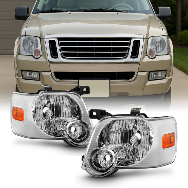 AKKON - For 06-10 Ford Explorer/Sport Trac Chrome Clear Headlights Front Lamps Direct Replacement Left + Right