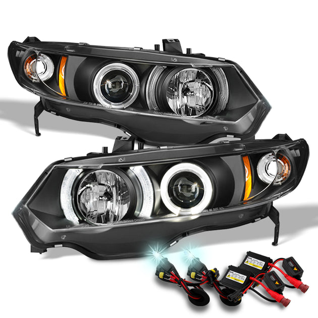 AKKON - For 06-11 Honda Civic 2 Doors Coupe Black Bezel Dual Halo Ring Projector Headlights Lamps+8000K HID