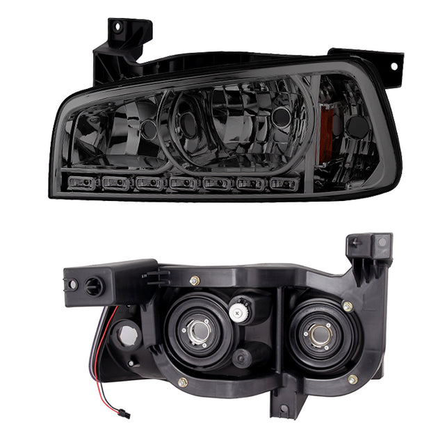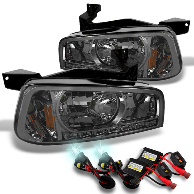 AKKON - For 06-10 Dodge Charger Smoke 1 Piece LED Headlights w/Corner Signal Lamps +Slim 8K Blue White HID Xenon