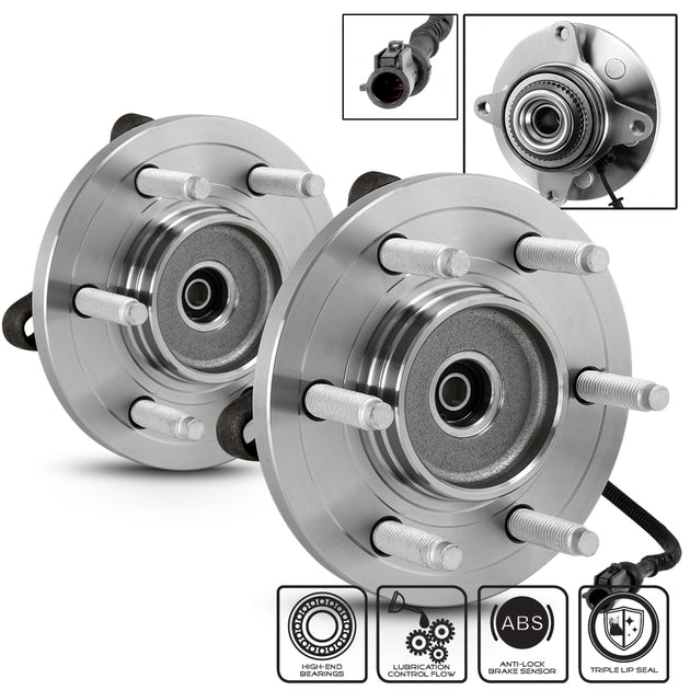 AKKON - For 07-10 Ford Expedition | Lincoln Navigator 4WD 515095 Pair of 6-Bolt Front Wheel Hub and Bearing Assembly W/ ABS