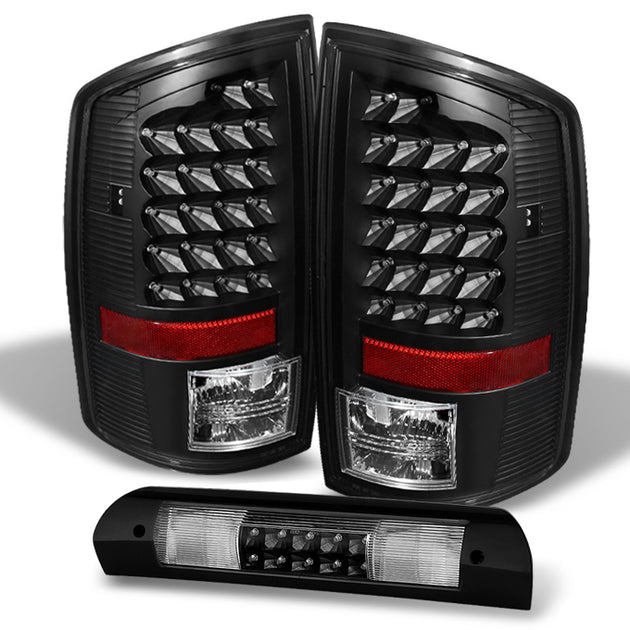 AKKON - For 07-09 Dodge Ram 1500 2500 3500 Pickup Truck Black Bezel LED Tail lights + LED 3rd Brake light Set