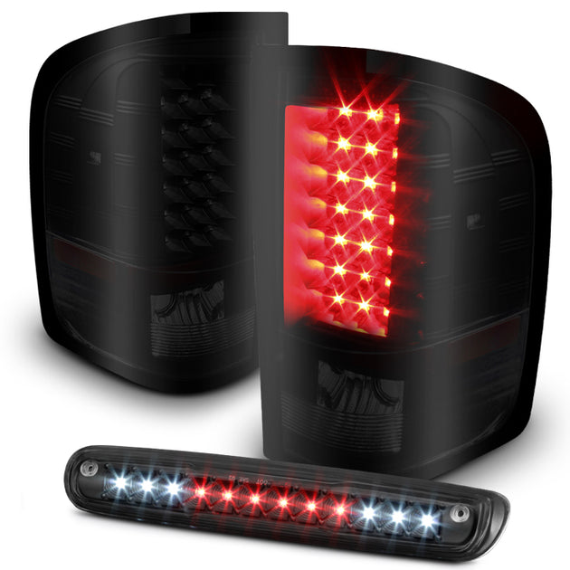 AKKON - For 07-13 Silverado 1500 2500 3500 Heavy Duty LED Black Smoked Tail Lights + LED Black 3rd Brake Light