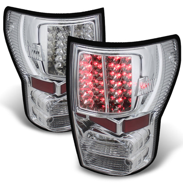 AKKON - For 07-13 Toyota Tundra Pickup Truck Chrome Clear Rear LED Tail Lights Brake Lamps Replacement Pair