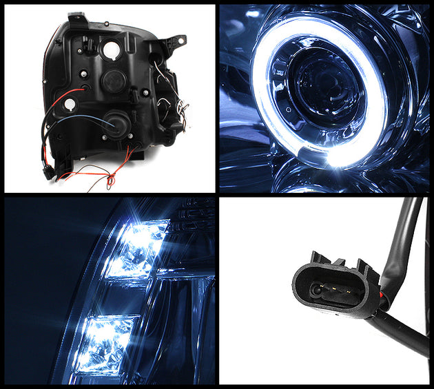 AKKON - For 07-14 GMC Yukon & Yukon XL Chrome Halo Projector LED Headlights + Clear Fog Lights W/Bulbs