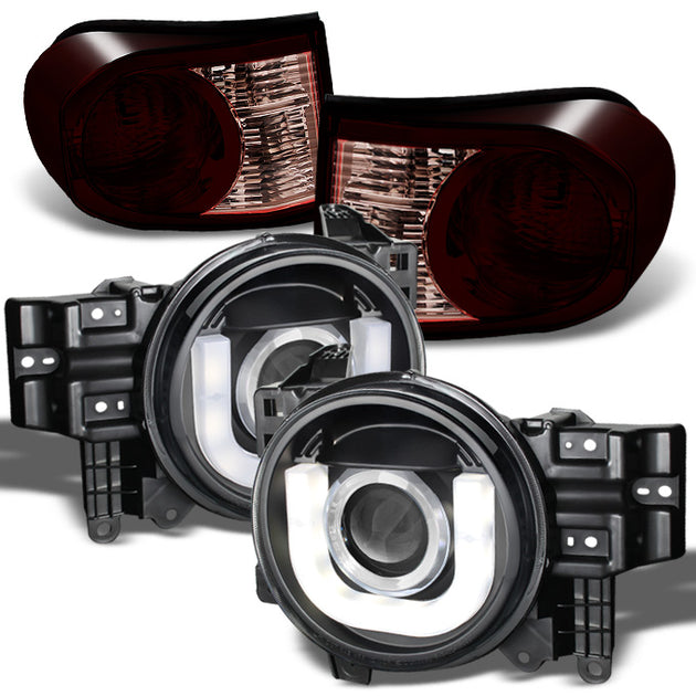 AKKON - For 07-14 Toyota FJ Cruiser Black Bezel 3D LED Tube Headlights + Red Smoked Lens Tail Brake Lamp Combo