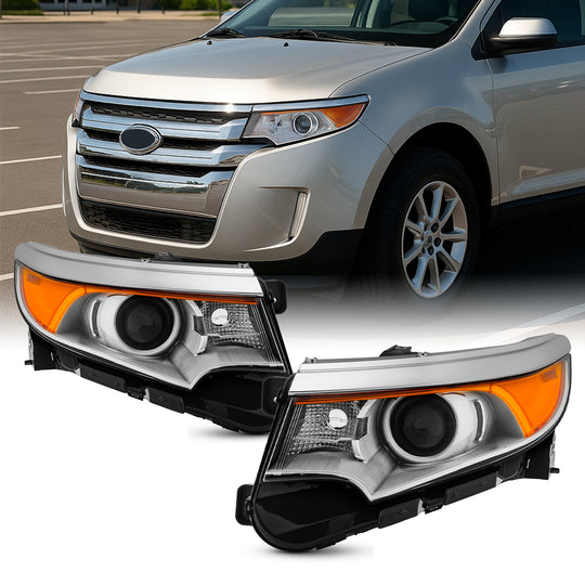 Regular price $178.99SKU: HD-JH-FEDGE11-OE-L_HD-JH-FEDGE11-OE-R This is a 100% brand new pair of Replacement Headlights in Chrome Housing with Clear Lens Compatible With: 2011-2014 Ford Edge w/Halogen Type Headlight Models ATTN: Compatible w/Halogen Type Headlight Models ATTN: Not Compatibl... -