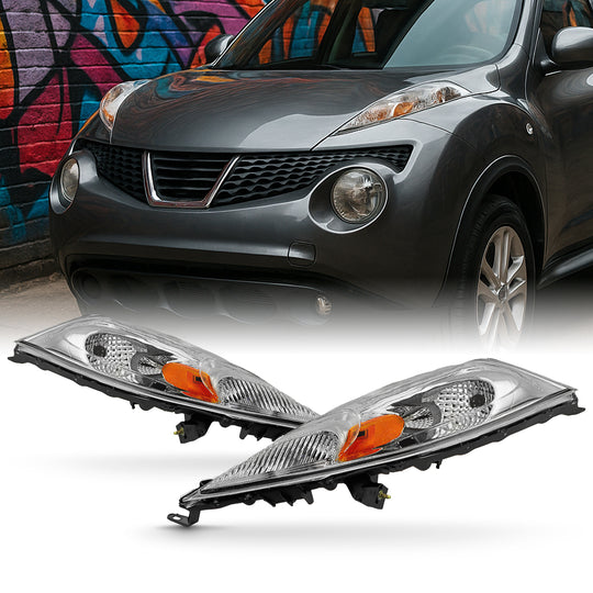 AKKON - Fits 2011-2014 Nissan Juke [Halogen Type] Chrome Front Upper Turn Signal Headlights Driver+Passenger Replacement