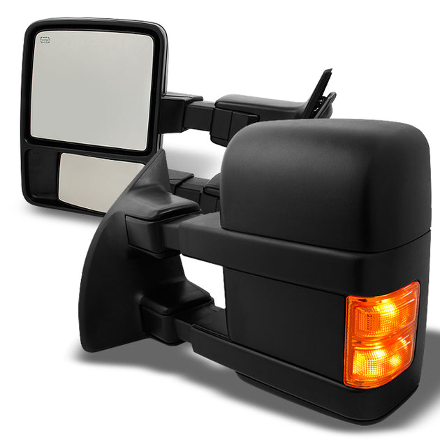 AKKON - For 08-16 Ford F250/F350/F450/F550 SuperDuty Pair of Power + Heated + Turn Signal Black Texture Towing Side Mirrors