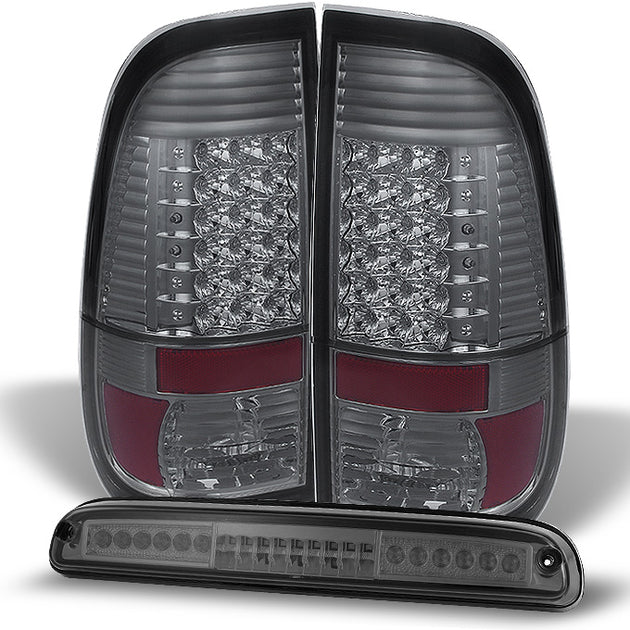 AKKON - For 08-16 Ford F250 350 450 550 Super Duty Pickup Truck Smoked Tinted Tail light + Red LED 3rd Brake light Combo