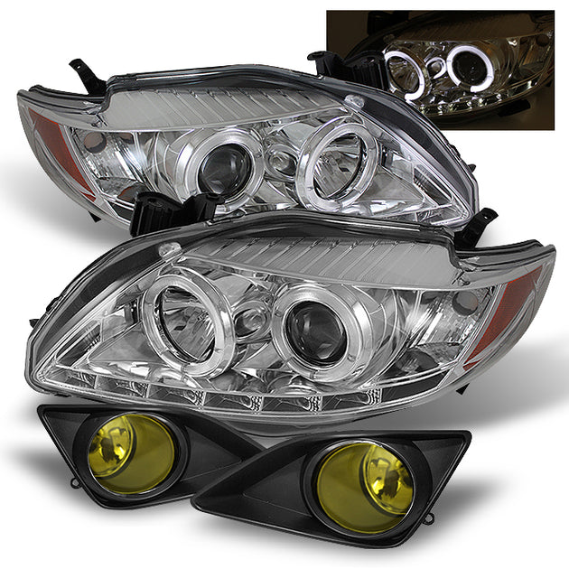 AKKON - For 09-10 Corolla DRL LED Clear Dual Halo Projector Headlights + Yellow Fog Light Lamp W/Switch