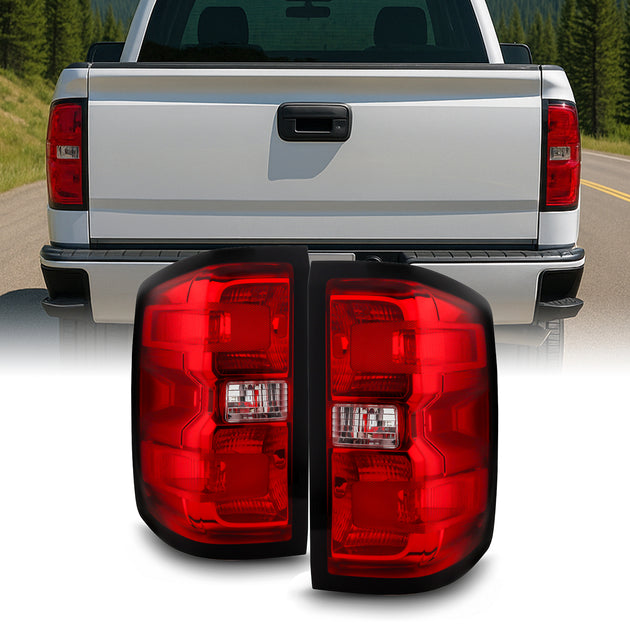 AKKON - Fit 2014-2019 Chevy Silverado 1500 2500 3500HD [Incandescent Upgrade] LED Tail Lights Assembly Driver & Passenger Black Housing Lamp